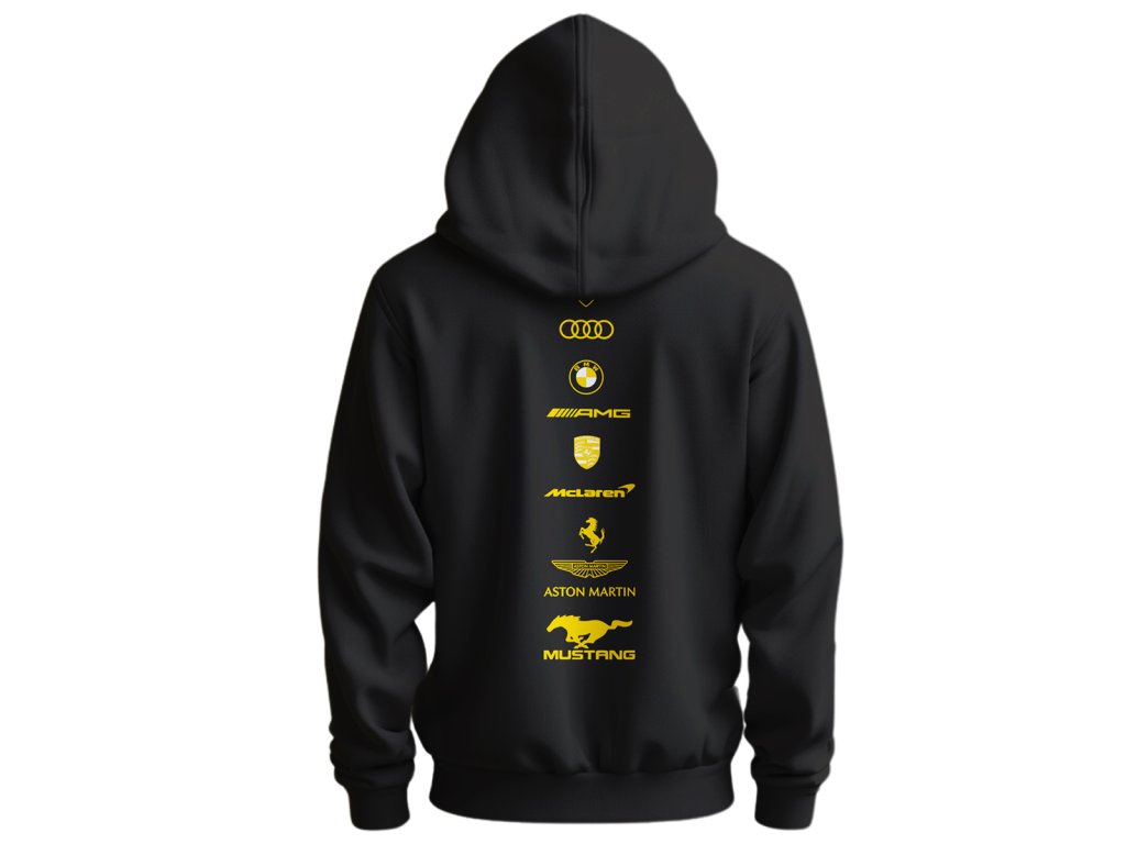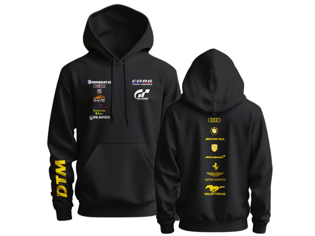 Ukaž, pro koho bije tvé závodní srdce! Tato exkluzivní černá mikina je oficiálním merchem šampionátu CORG Team Series DTM. Dominantní žlutý nápis DTM na rukávu, loga partnerů na hrudi a přehlídka legendárních značek vozů na zádech dělají z tohoto kousku povinnou výbavu každého virtuálního závodníka i fanouška Gran Turisma.